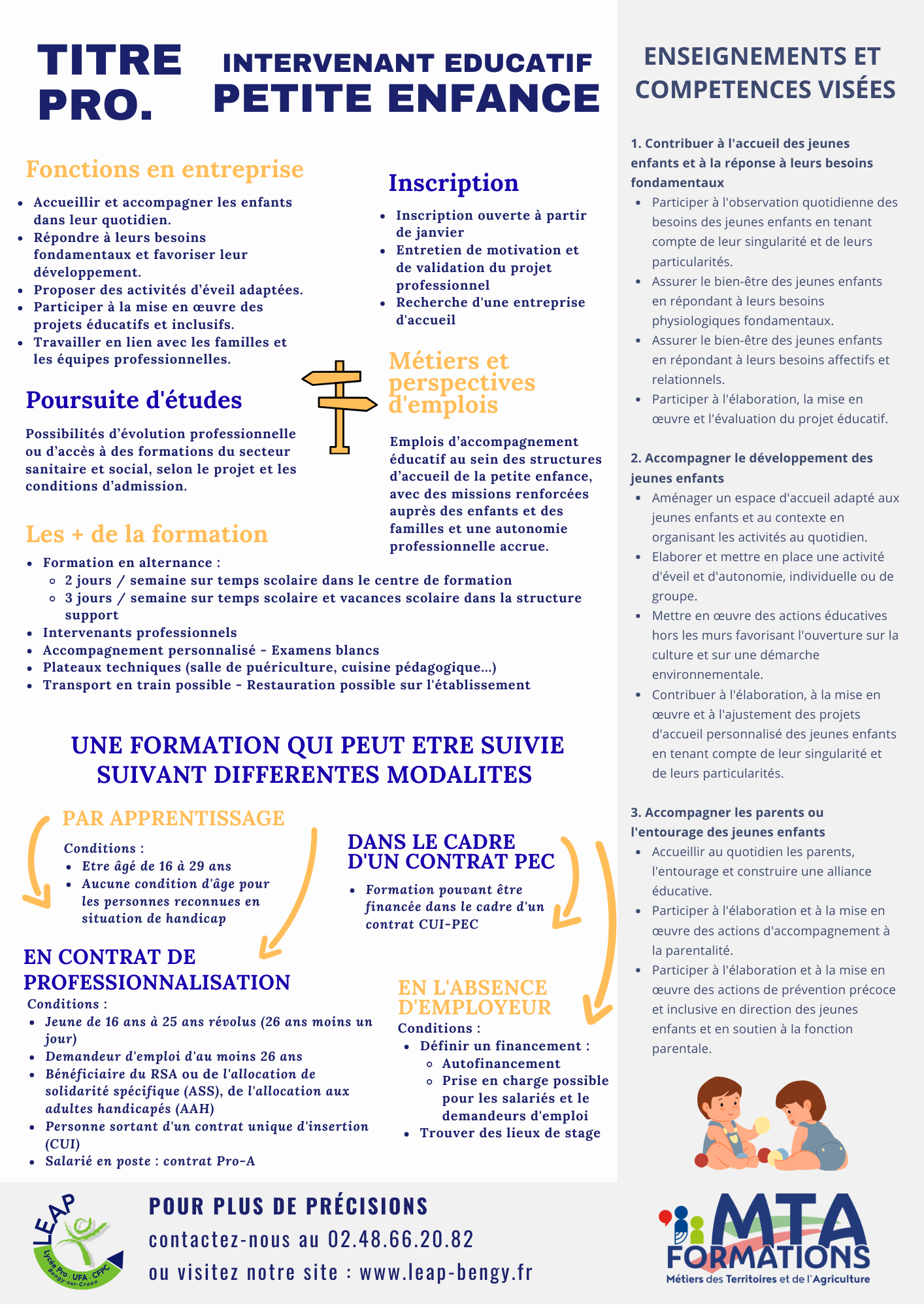 • Motivation pour le domaine de la petite enfance (une 1ère expérience significative ou une formation dans le domaine de la petite enfance peut être valorisée lors de l’entretien)